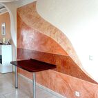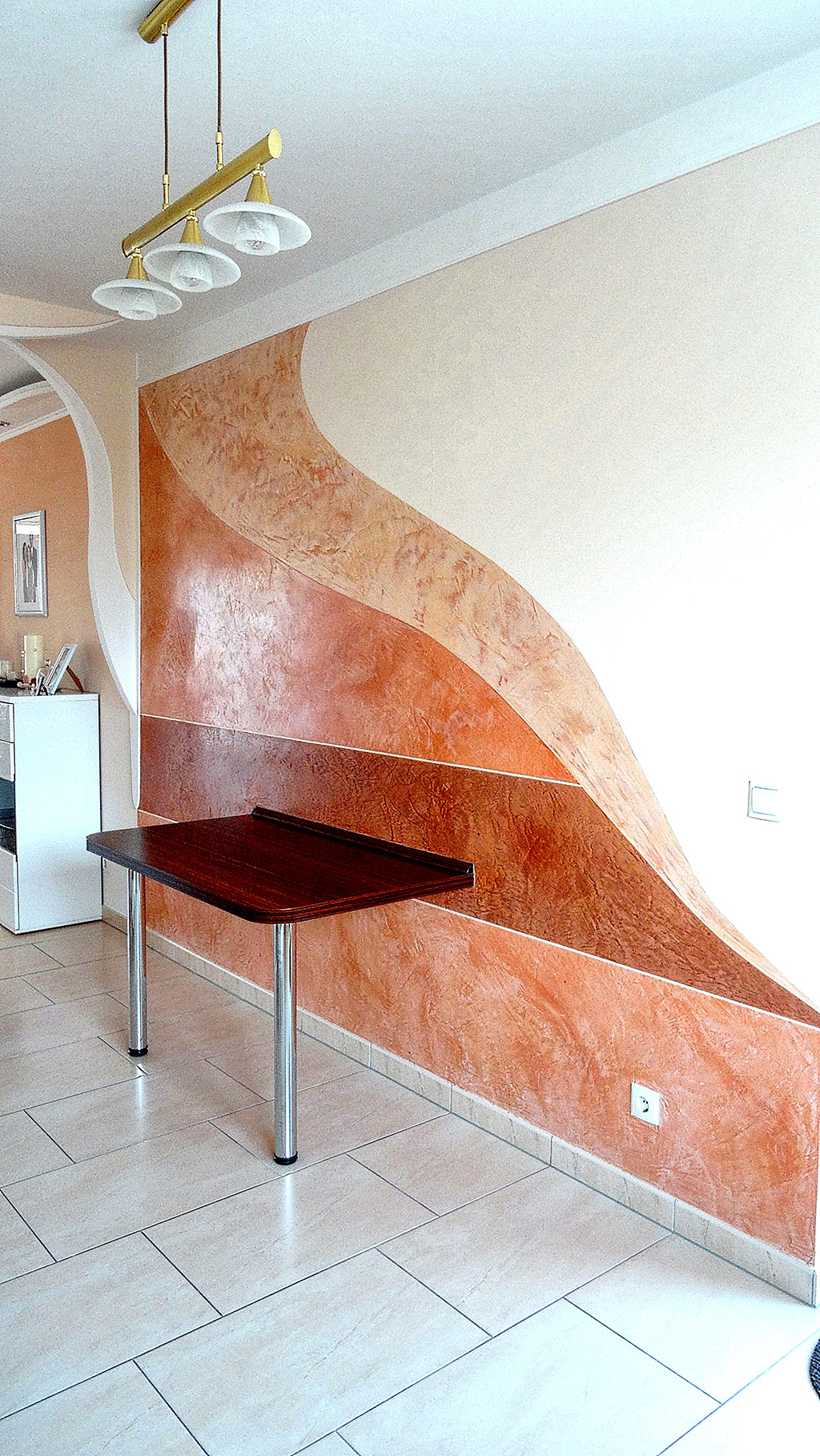 Verschiedene Oberflächenstrukturen erzeugen interessante Effekte. D Zum Beispiel mit verschiedenen Spachteltechniken, Marmorimitation, Granitimitation, Sandsteinimitation und Holzimitation von nahezu allen Holzarten. Als Akzente lassen sich einzelne Elemente vergolden oder mit Platin, Palladium Silber, Kupfer oder Aluminium als Blattmetall belegen und dienen als Blickfang. D Einzelne, in das gesamte Gestaltungskonzept harmonisch integrierte Designelemente machen Ihren Raum individuell und unverkennbar.