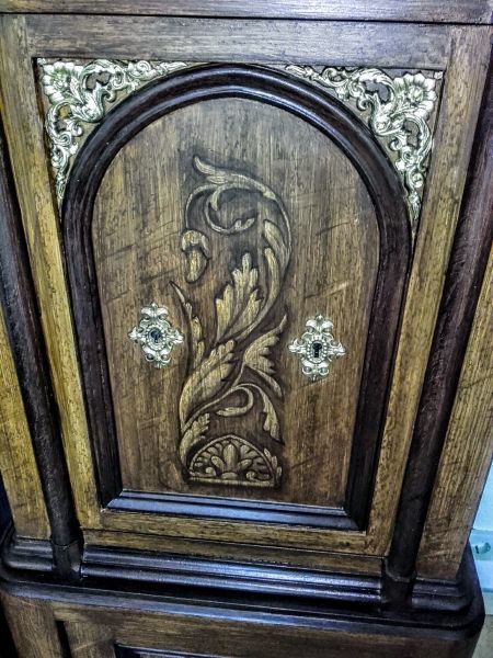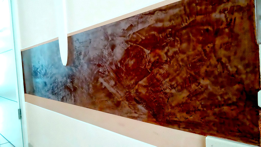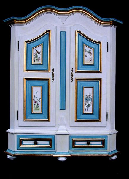 Möchten Sie aber das Aussehen von Ihrem alten Gegenstand verändern und es in einem neuen Licht erscheinen lassen, ist es auch möglich. Zum Beispiel: eine metallische Oberfläche soll wie Echtholz aussehen, dann imitiere ich Holzmaserungen von fast jeder Holzart. Es funktioniert aber auch umgekehrt, wenn Oberflächen in einer Metalloptik erscheinen sollen, dann belege ich sie mit beliebigen Blattmetallen : mit allen Goldsorten, Platin, Palladium, Silber, Kupfer, Aluminium oder erstelle eine Rosteffekt. Reißlack und Patina lässt sie dann antik aussehen. Außerdem sind verschiedenste Marmor-, Granit- und Sandsteinimitationen.