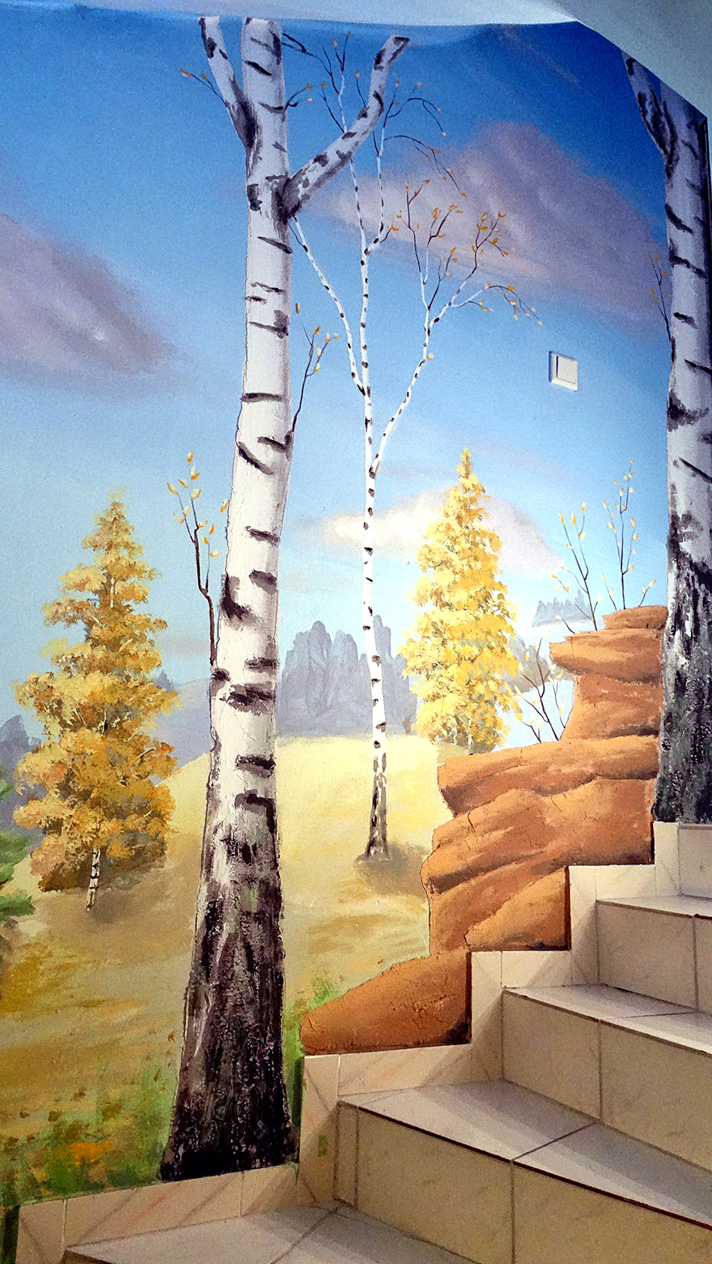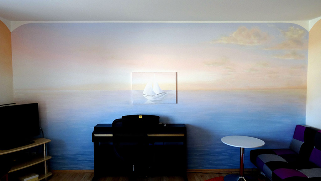 Illusionsmalerei verwandelt Ihren Raum in Ihren Traum. Die Atmosphäre von dem Lieblinsmotiv kommt in die greifbare Nähe und schafft damit eine positive Laune. Egal, welches Wetter grade draußen ist, Sie sind immer von Ihrer Lieblingsjahreszeit umgeben.