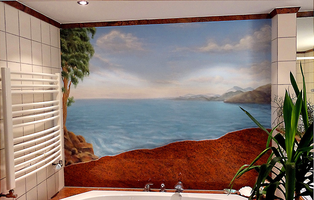 Mit Illusionsmalerei bekommen Sie eine exklusive Möglichkeit Ihre Räume einzigartig und unverwechselbar zu machen. Jedes Motiv wird individuell besprochen. Ob es ein tropischer Strand am Meer oder eine winterliche Berglandschaft, ein romantischer Sonnenuntergang unter Palmen oder eine Blumenwiese im Wald, ein Ausblick von einer Terrasse mit Marmorsäulen auf eine Toskana-Landschaft oder vielleicht doch eine Metropole mit moderner Architektur und Wolkenkratzern sein darf? Der Fantasie werden dabei keine Grenzen gesetzt .